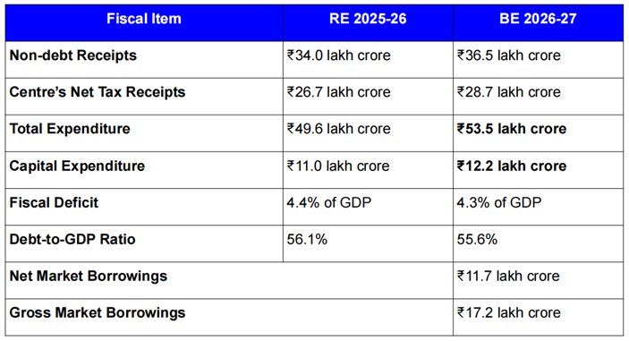 • For FY 2026–27, capital expenditure has been raised to ₹12.2 lakh crore.